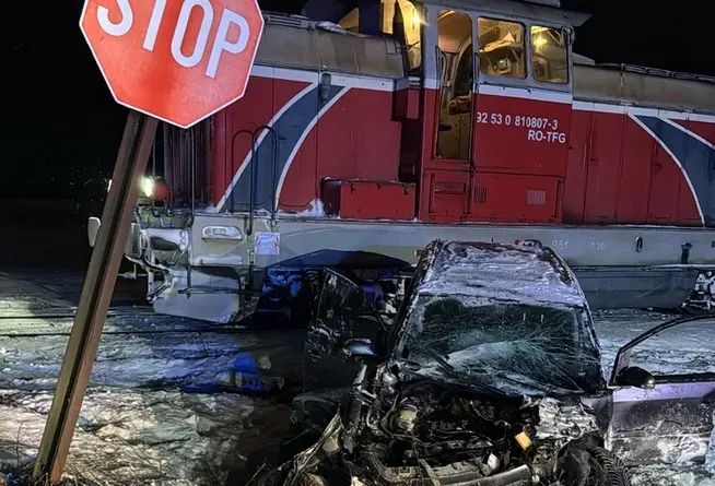 A intrat cu mașina în fața locomotivei. La volan, un puști de 19 ani. FOTO