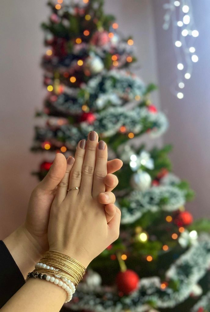 „Zâmbesc din adâncul sufletului. Cu lacrimi, cu iubire, cu liniște. Nu am cuvinte pentru a descrie ce simt… doar fericire și emoție pură. Este despre un „DA” spus din inimă. Te iubesc infinit!” – a scris tânăra profesoară, mesajul fiind însoțit de simbolul inelului de logodnă.
