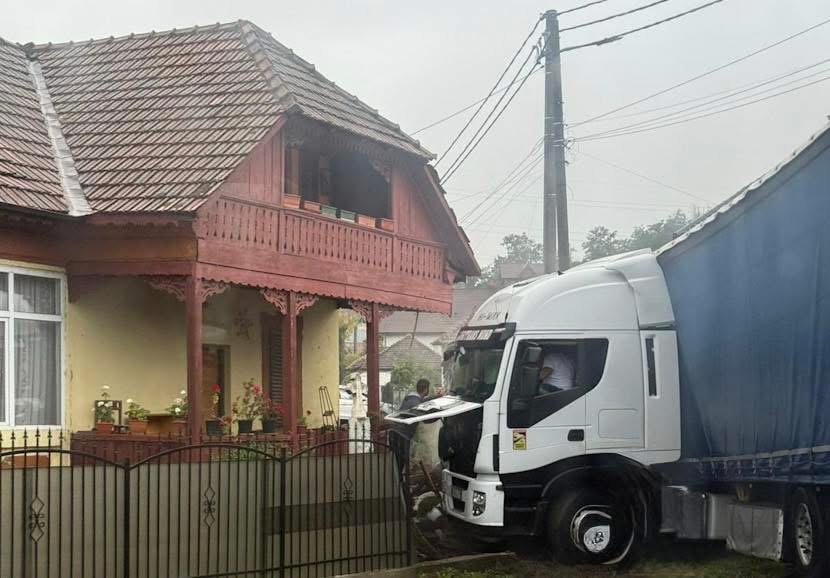 Accident pe DN 7: s-a trezit cu TIR-ul în casă! FOTO