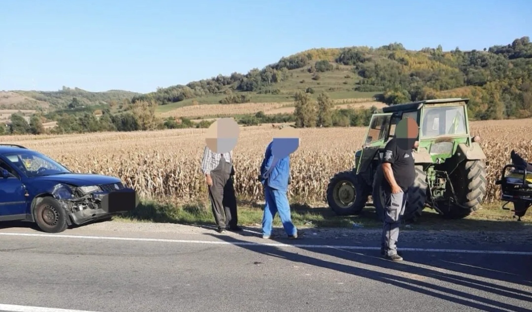 Un autoturism condus spre Sibiu de un bărbat de 40 de ani, din judeţul Vâlcea, a intrat în coliziune cu un tractor care circula în faţa sa, condus de un localnic de 51 de ani. Șoferul tractorului a virat la stânga încălcând marcajul longitudinal continuu. Potrivit Agerpres, două femei, de 38, respectiv 81 de ani, şi un bebeluș de 5 luni, pasageri în autoturism, au fost transportaţi la spital conştienţi.