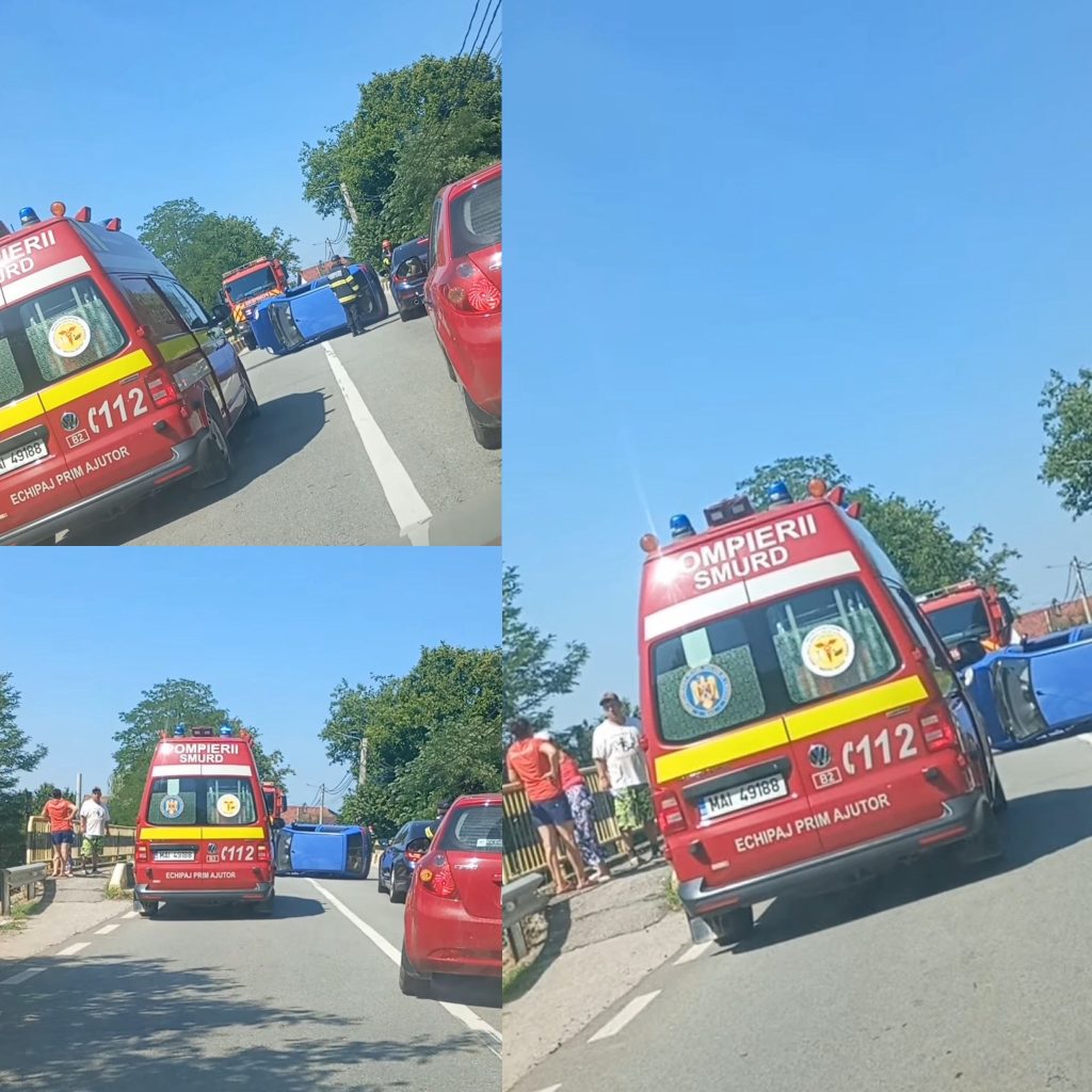 Accident rutier în Peștișani – Mașină răsturnată pe carosabil. FOTO