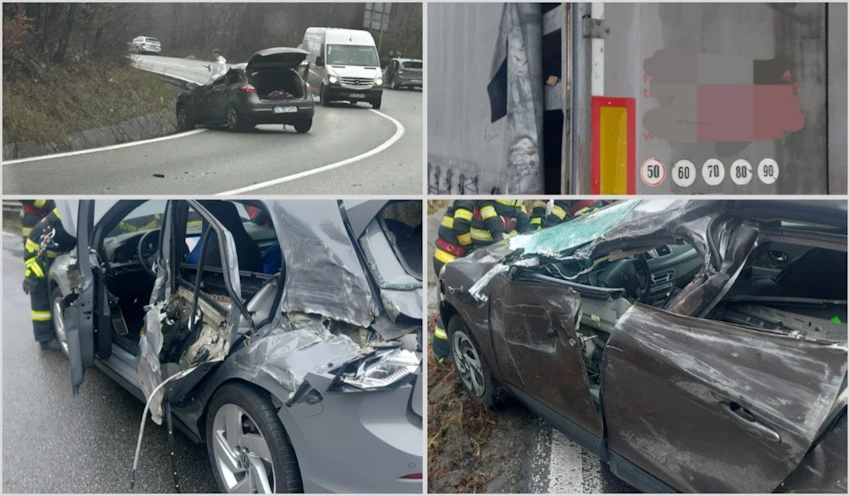 ACCIDENT și pe DN 7. Trei mașini și un TIR au intrat în coliziune