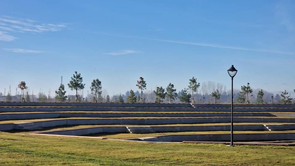 Noua zonă de agrement are în dotare cu loc de joacă pentru copii, amfiteatru cu scenă, punct de informare și un spațiu de închiriat biciclete.