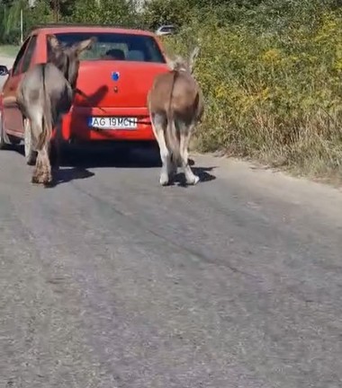 Anchetă după ce un șofer a fost filmat în timp ce trage cu maşina doi măgari