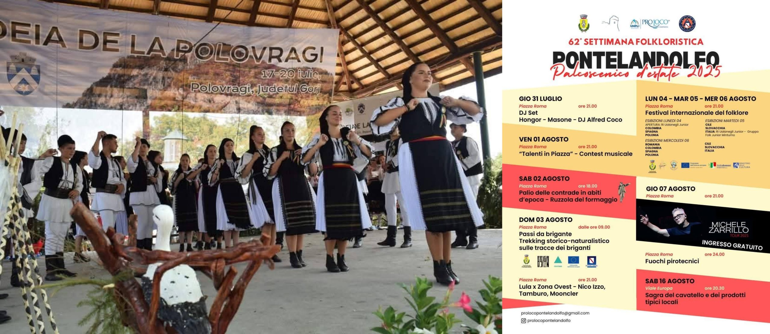 Programul artistic include două momente importante: ceremonia de deschidere și primul spectacol (luni, 4 august), precum și participarea la seara internațională a tradițiilor (miercuri, 6 august), desfășurate în Piazza Roma din Ponte Landolfo.