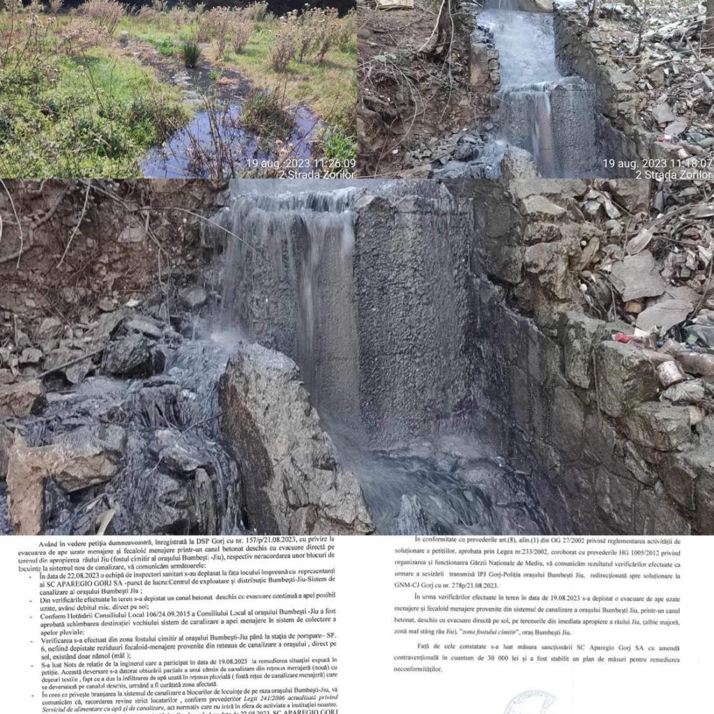 Aparegio amendată de Garda de Mediu! Mizeria din canalizare a ajuns chiar lângă spitalul din Bumbești Jiu