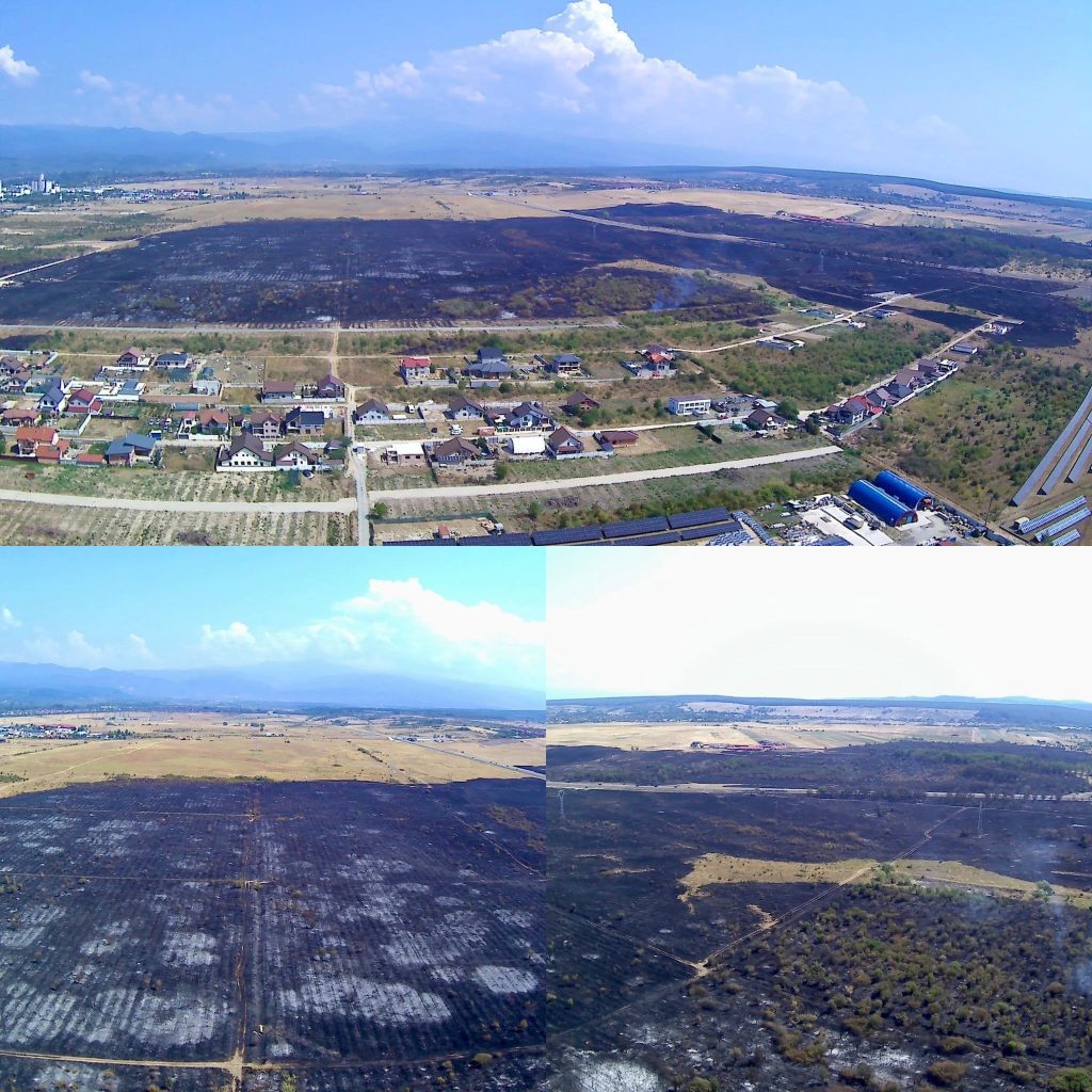 Un incendiu uriaș a mistuit ieri peste 126 de hectare de vegetație în cartierul Narciselor și Preajba din Târgu Jiu, lăsând în urmă un peisaj aproape ireal. Imaginile aeriene surprinse de drona tânărului Ștefan Protesi Sefter arată o adevărată mare de cenușă și copaci arși.