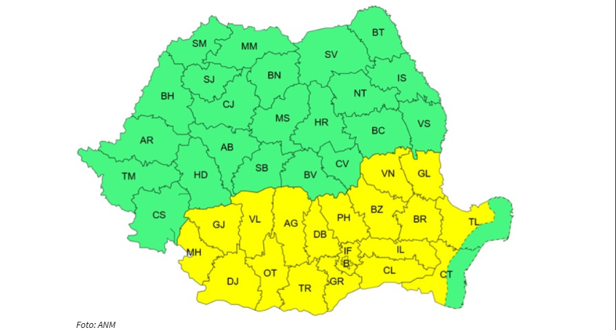 „Miercuri, în Oltenia, în Muntenia, în sudul Moldovei şi în Dobrogea continentală vor fi temperaturi deosebit de ridicate, local caniculă şi disconfort termic, iar indicele temperatură-umezeală (ITU) va atinge local pragul critic de 80 de unităţi. Temperaturile maxime vor fi cuprinse între 33 şi 35 de grade, izolat mai ridicate în sudul Munteniei, spre 36-37 de grade”, a transmis ANM.
