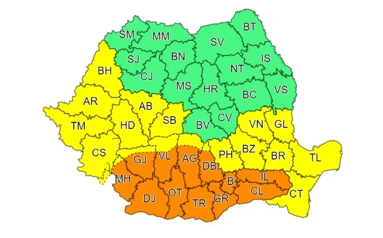 ANM a emis o atenţionare de cod galben de val de căldură, caniculă, disconfort termic ridicat, pentru mâine 18 iulie.