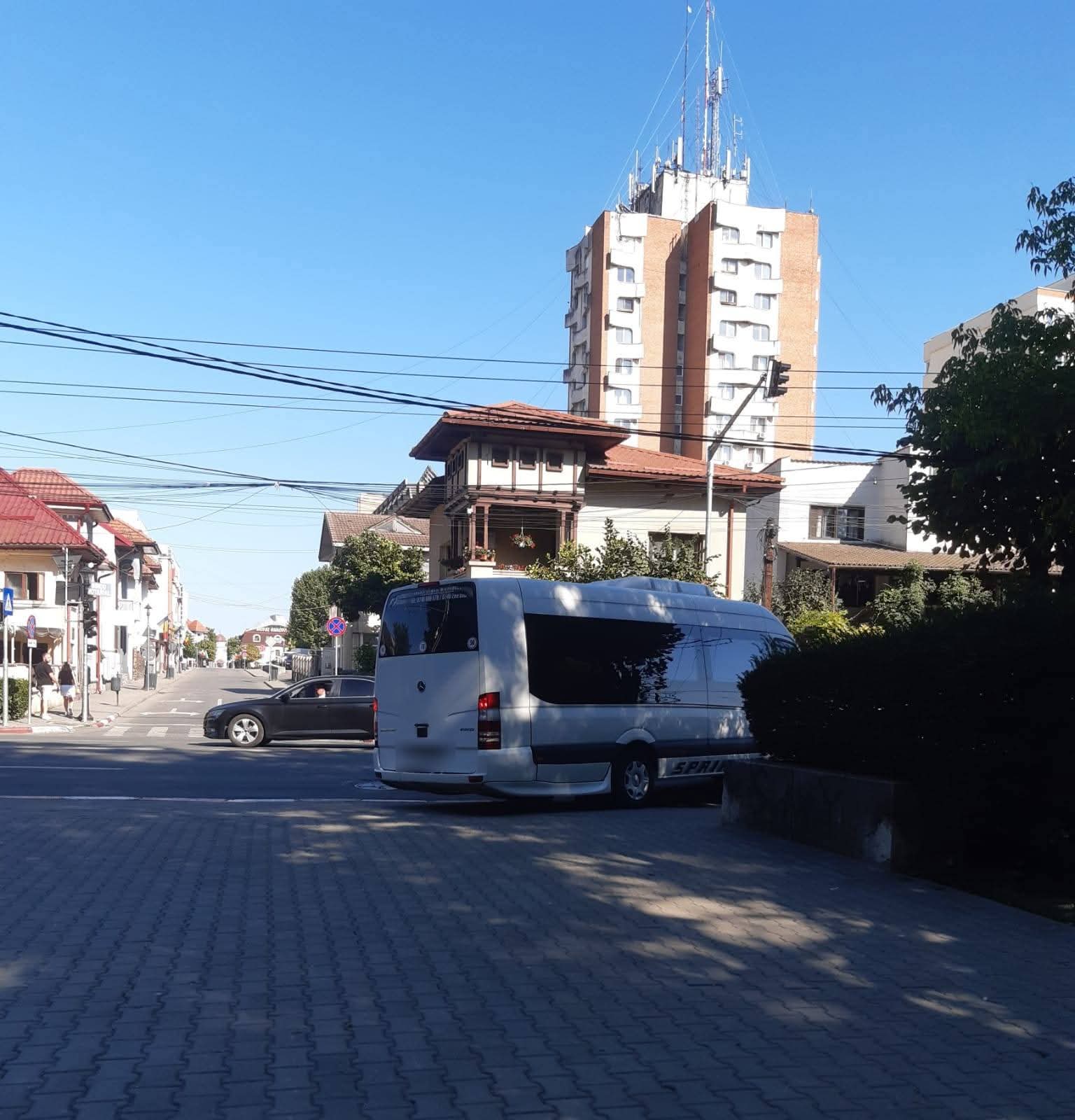Ce a pățit un șofer care a intrat cu microbuzul în Parcul Central din Târgu Jiu