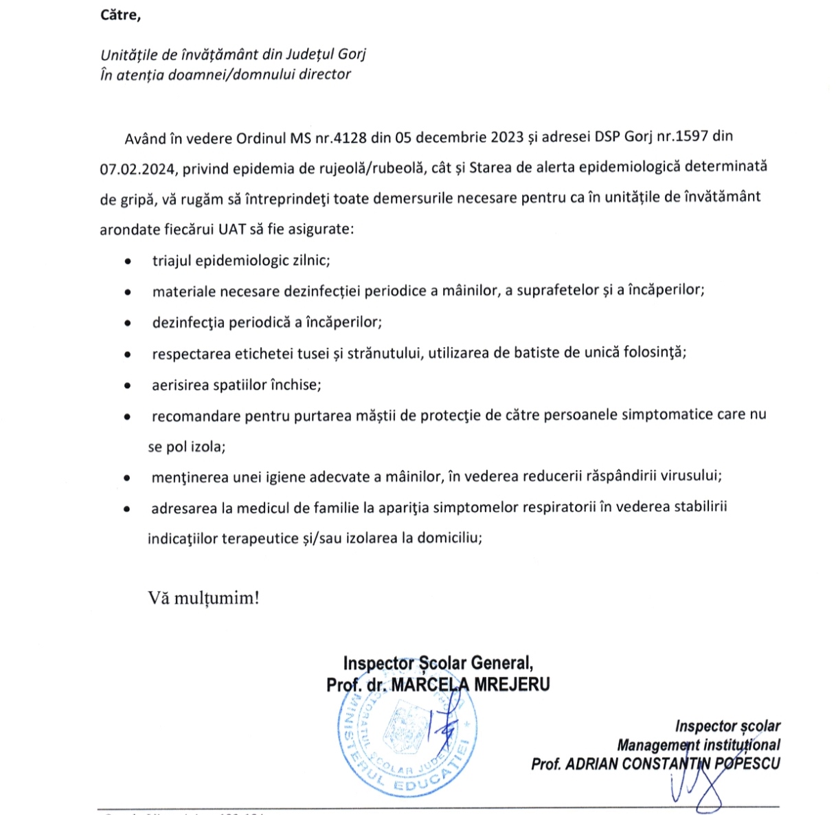 Ce a transmis Inspectoratul Școlar către școlile din Gorj. Măsuri pentru limitarea gripei și a cazurilor de rujeolă