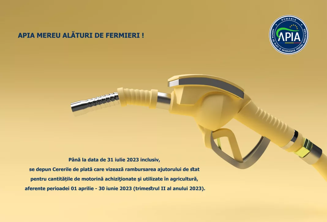 APIA primește Cereri de plată pentru rambursarea ajutorului de stat pentru cantităţile de motorină aferente trimestrului II.