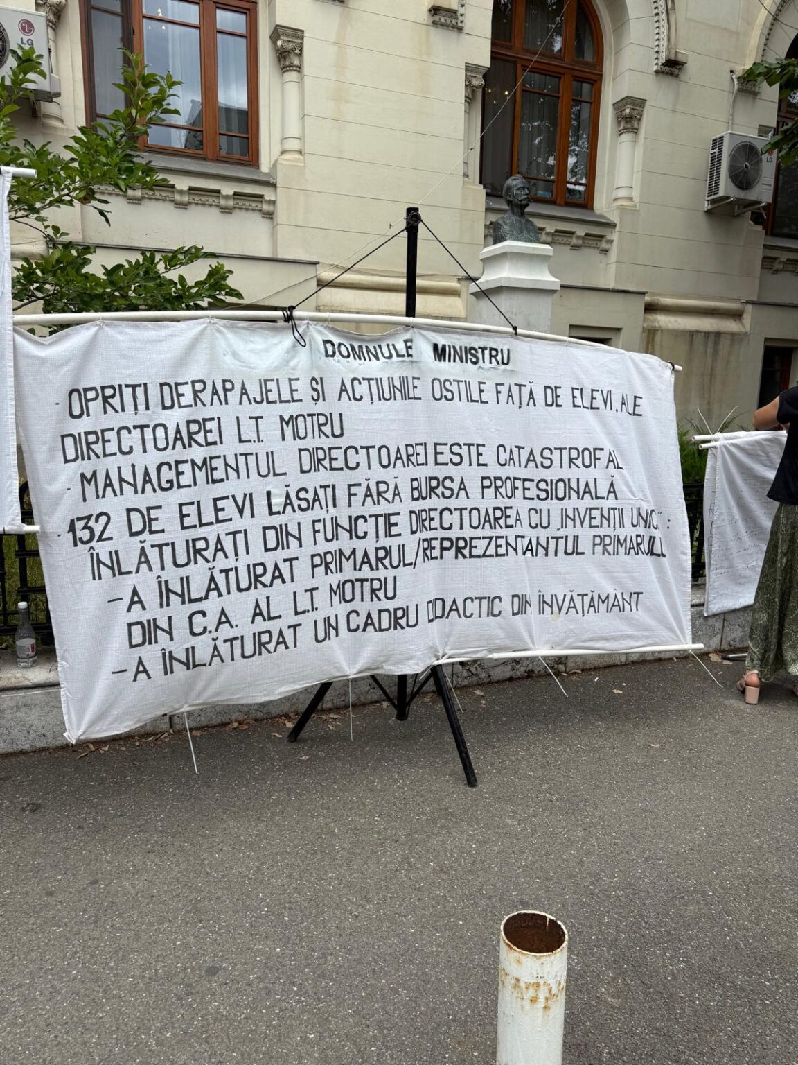 Profesorii au adus bannere uriașe cu mesaje directe către ministrul Daniel David: