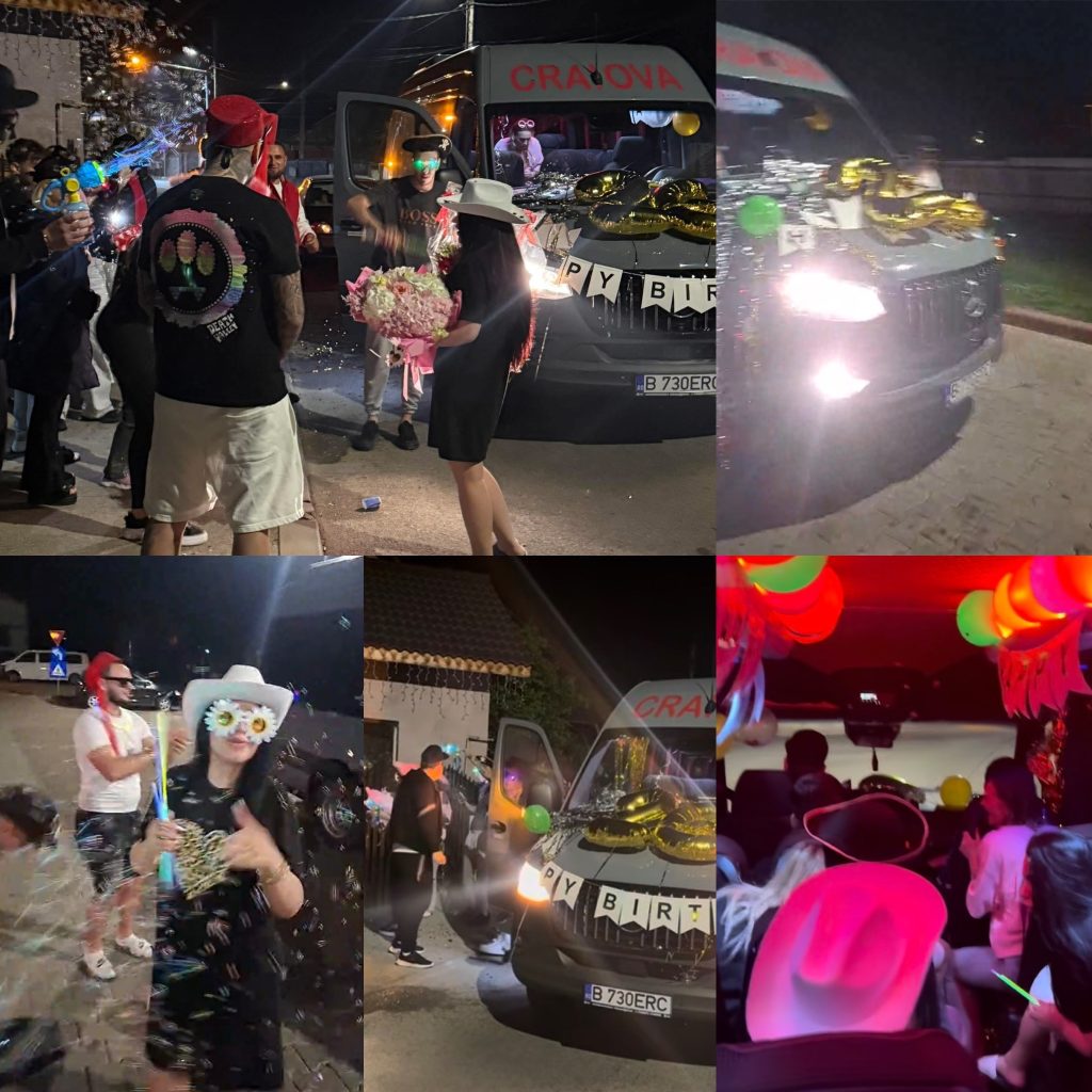 Microbuzul deținut de aceștia a fost transformat peste noapte într-un adevărat club mobil, iar distracția nu a stat pe loc nicio clipă. Petrecerea a „colindat” orașul, cu opriri în mai multe puncte-cheie, inclusiv în zona centrală, în fața Primăria Târgu Jiu, dar și în apropiere de McDonald’s sau OMV.