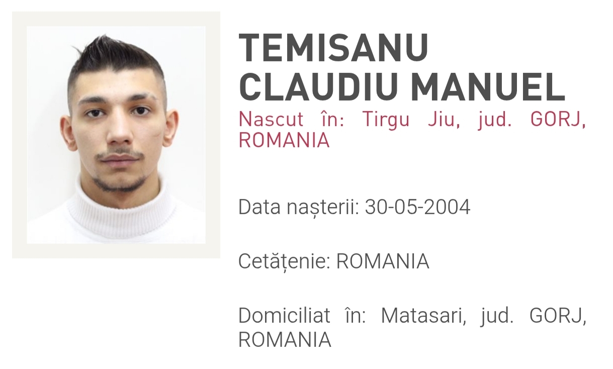 Datele publicate de Poliția Română arată că acesta s-a născut la 30 mai 2004, are cetățenie română și domiciliul în Mătăsari, județul Gorj. Motivul urmăririi este clar: mandat de executare a pedepsei cu închisoarea.