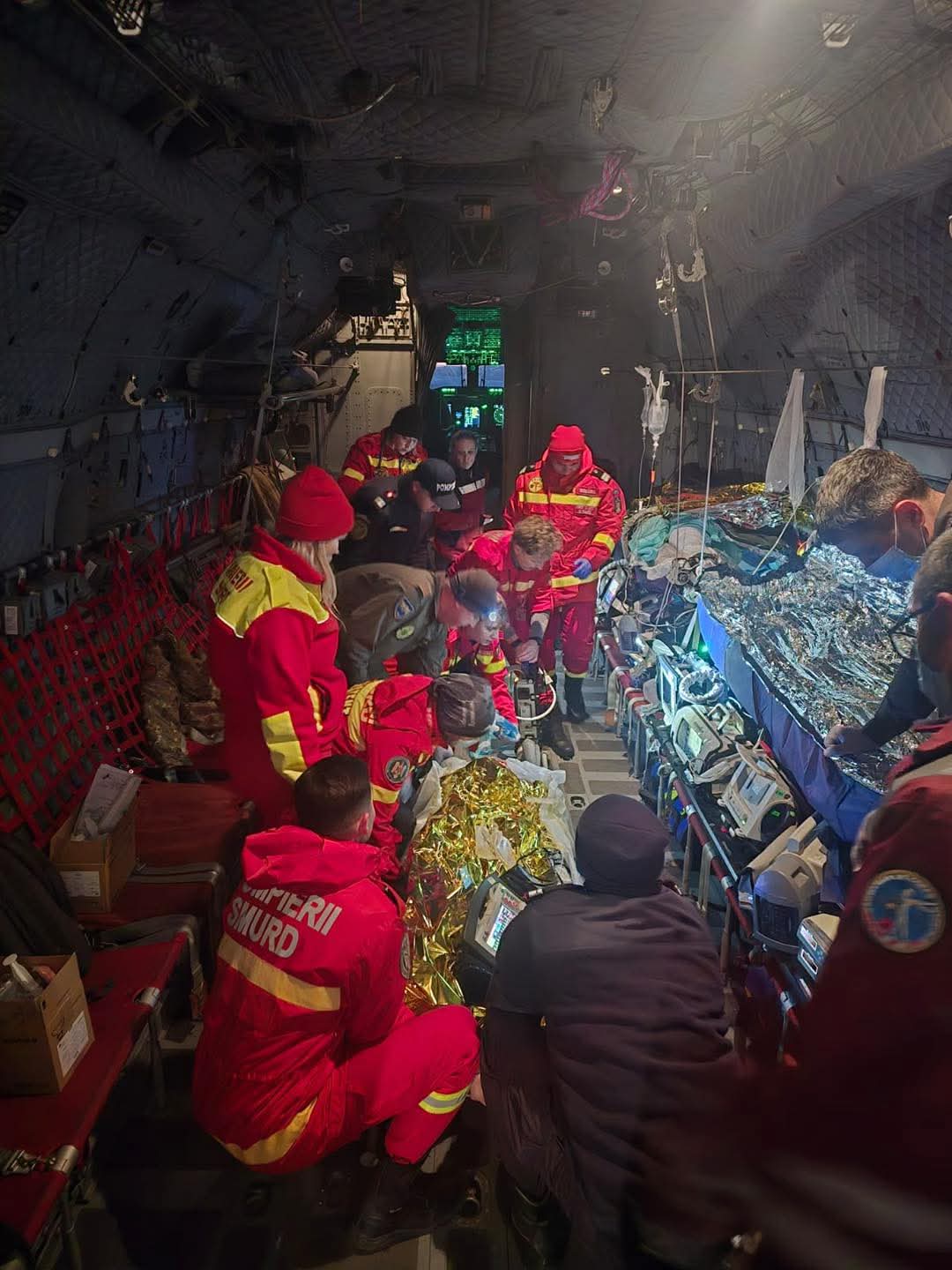 Echipa medicală care monitorizează pacienții pe timpul zborului este formată din specialiști ai Forțelor Aeriene Române și ai Spitalului Clinic de Urgență – București.