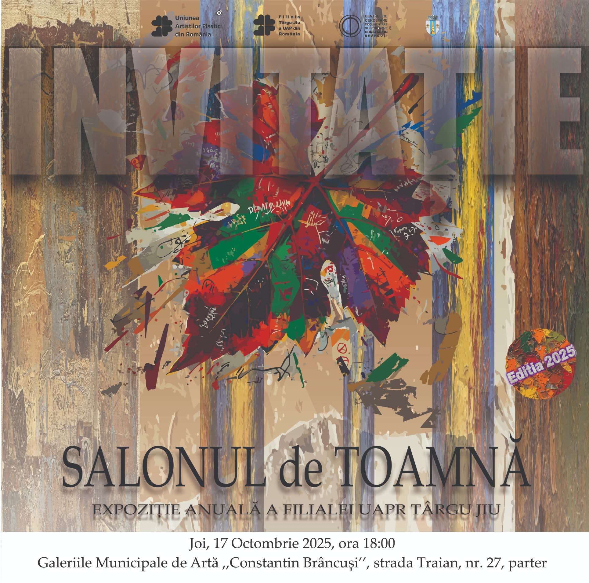 Filiala Târgu Jiu a UAP din România în parteneriat cu Centrul de Cercetare, Documentare și Promovare „Constantin Brâncuși” din Târgu Jiu, organizează joi, 16 octombrie 2025, ora 17.00, la Galeriile de Artă” Constantin Brâncuși” din Târgu Jiu, vernisajul expoziției de Arte Vizuale „SALONUL DE TOAMNĂ”, ediția cu numărul 29, a membrilor Filialei Târgu Jiu a UAP din România.