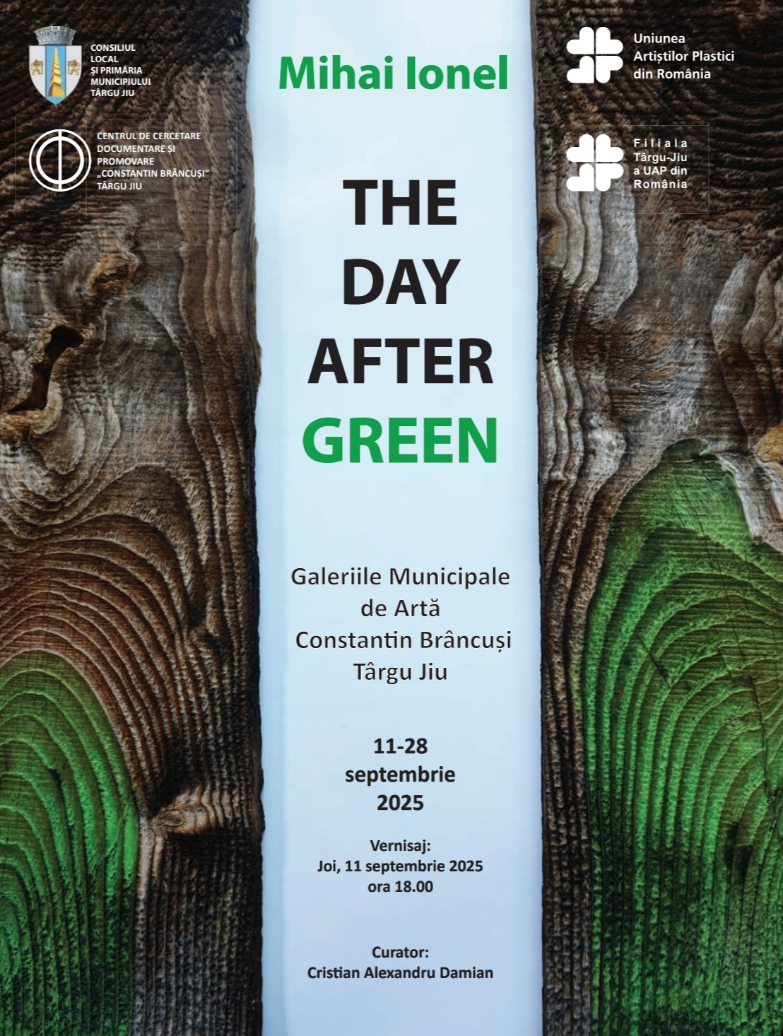 Joi, 11 septembrie 2025, începând cu orele 18.00, la Galeriile Municipale de Artă „Constantin Brâncuși” din Târgu Jiu, va avea loc vernisajul expoziției „The Day After Green” aparținând artistului vizual Mihai Ionel, curator: Cristian Alexandru Damian.