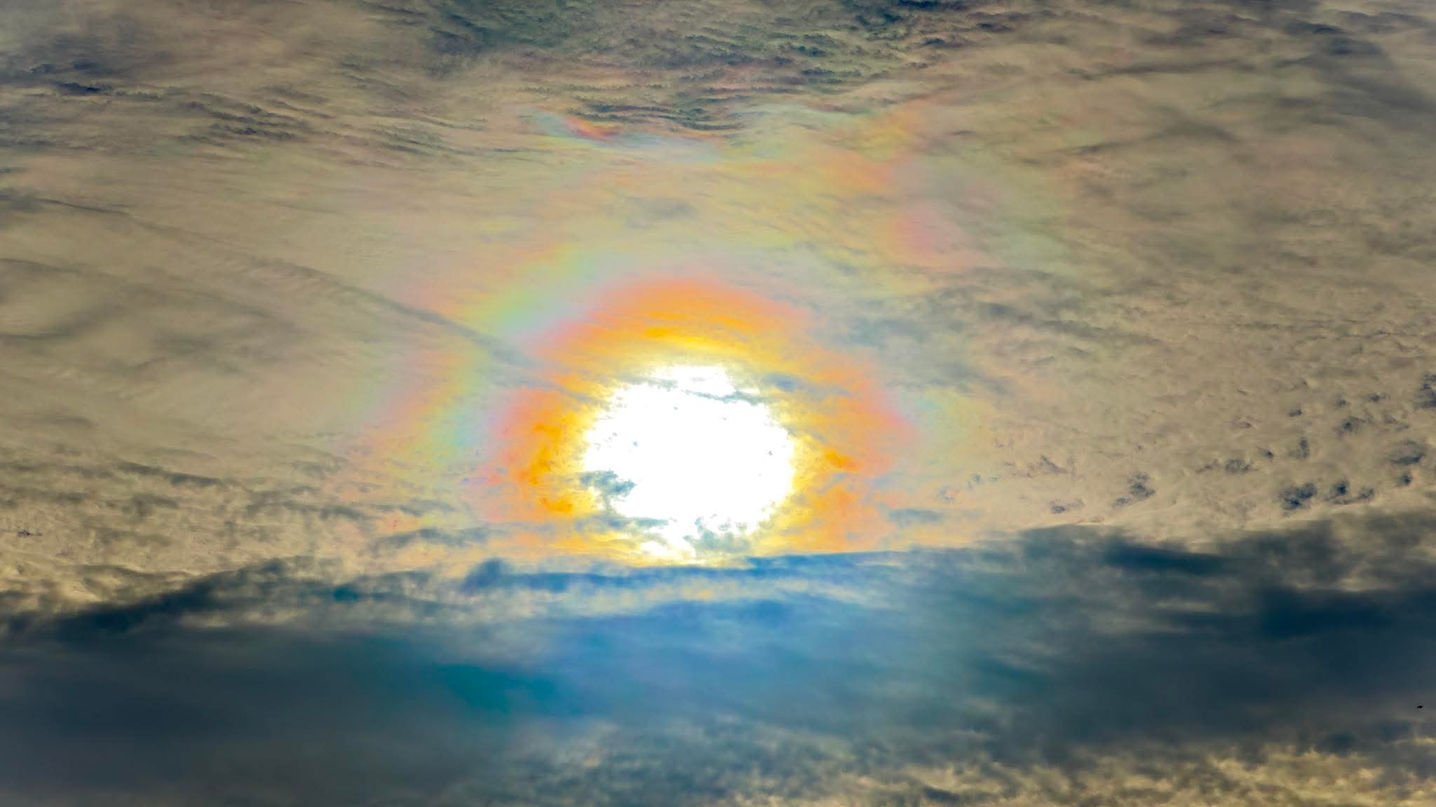 Fenomenul a fost vizibil în jurul orei 09:30 și s-a produs ca urmare a poziției norilor de tip cirocumulus, aflați direct în fața soarelui.
