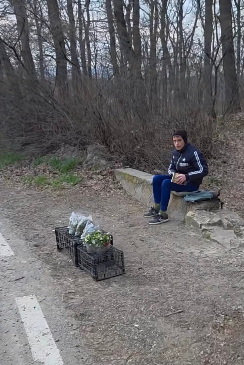 Imaginea care a emoționat o țară: Răzvan, un băiat de 13 ani, vinde urzici și flori pe marginea drumului