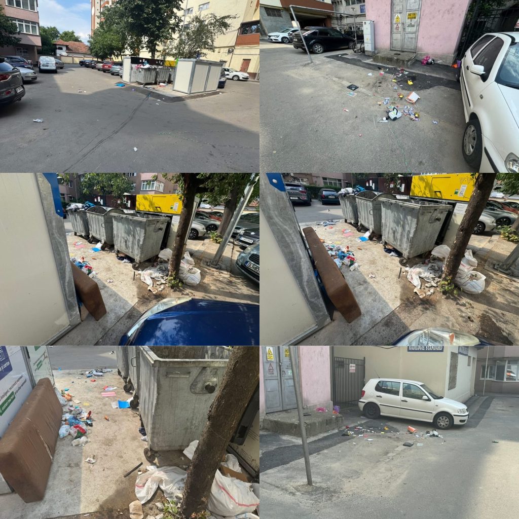În imaginile atașate se observă clar cum deșeurile au invadat spațiul public, ajungând până în dreptul mașinilor parcate, ceea ce reprezintă nu doar o problemă de estetică urbană, ci și una de igienă și sănătate publică.