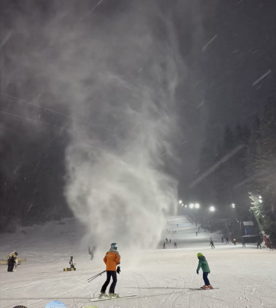 Imagini spectaculoase: o „tornadă” de zăpadă s-a format pe pârtie