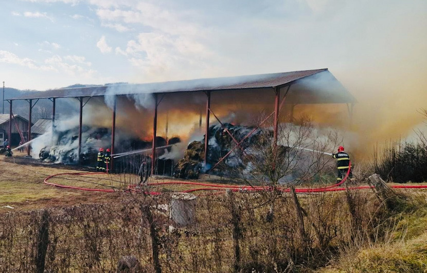 Un incendiu a izbucnit la un depozit de furaje de lângă Gorj. Pompierii militari din Vâlcea intervin de urgență în localitatea Mihaești. Focul se manifestă pe o suprafață de aproximativ 300 de metri pătrați.