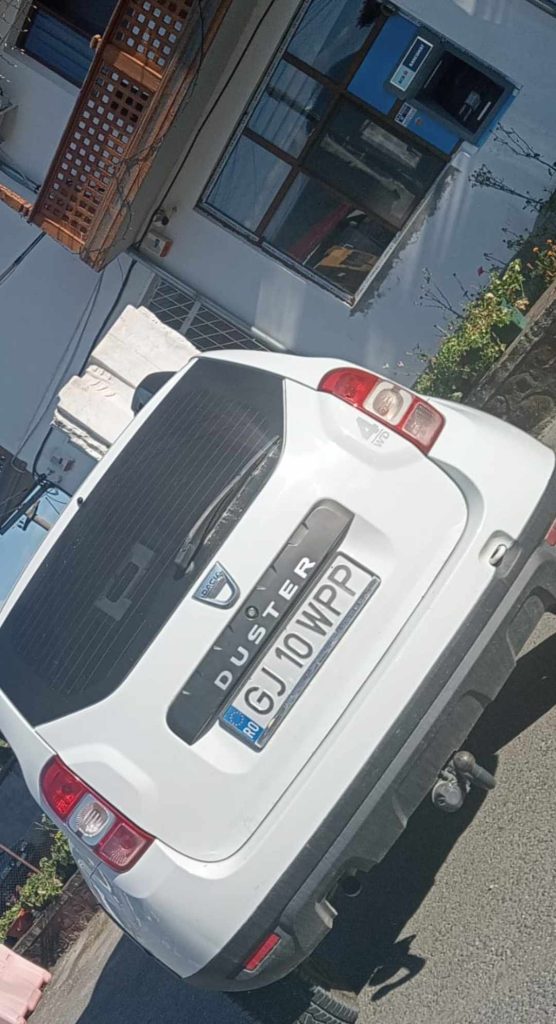 Celălalt Duster cu numărul GJ 10 WPP, fiind fosta mașină a Poliției Locale Peștișani, desființată între timp, se află și acum în fața primăriei.