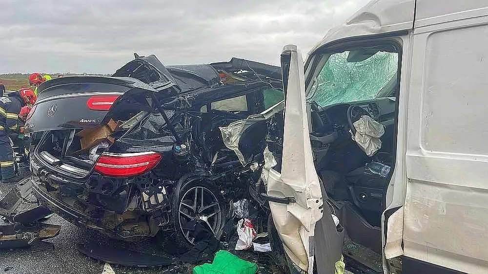 Mercedes zdrobit de o dubă: o persoană se zbate între viață și moarte! FOTO
