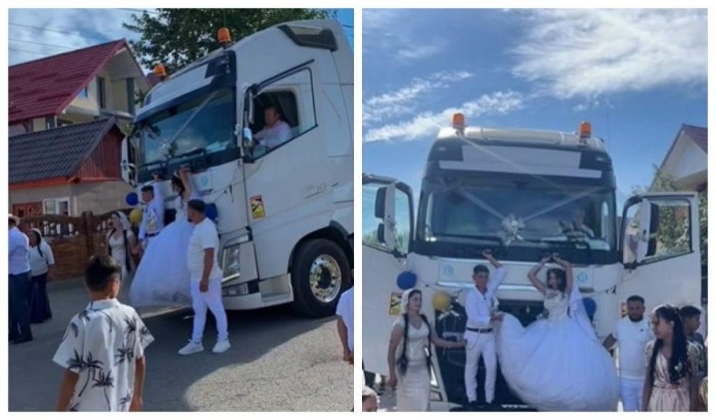 Doi tineri care s-au căsătorit au avut parte de un moment cel puțin surprinzător în ziua cea mare. Cei doi au fost legați de camion, iar scena a fost filmată. Urmăritorii s-au arătat uimiți de acest moment.