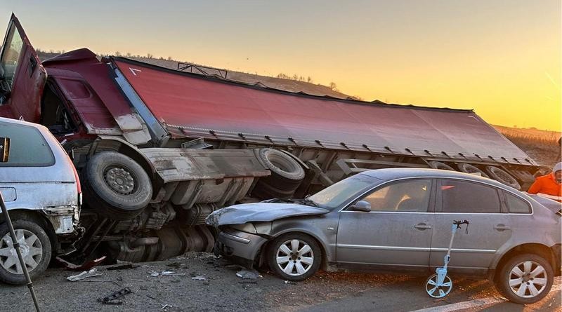 Un șofer a murit în această dimineață după ce TIR-ul pe care îl conducea a părăsit carosabilul, a lovit două autoturisme parcate și s-a răsturnat în șanț. Accidentul s-a produs pe Centura municipiului Lugoj, în județul Timiș.
