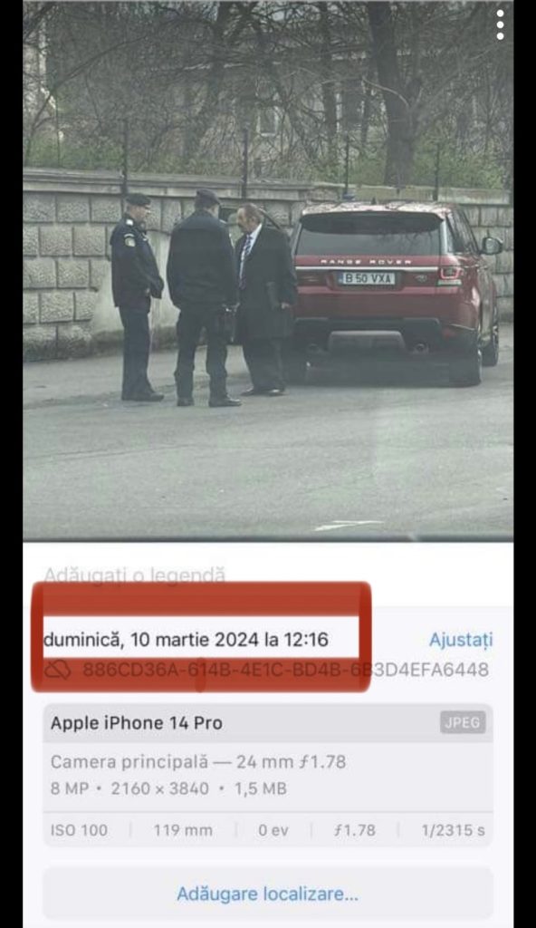 Acesta a fost surprins astăzi cu mașina personală pe care se afla un girofar de culoare albastră, chiar în fața Ambasadei Federației Ruse de pe strada Kiseleff din București. Acesta apare într-o imagine în timp ce stă de vorbă cu jandarmii care păzesc ambasada