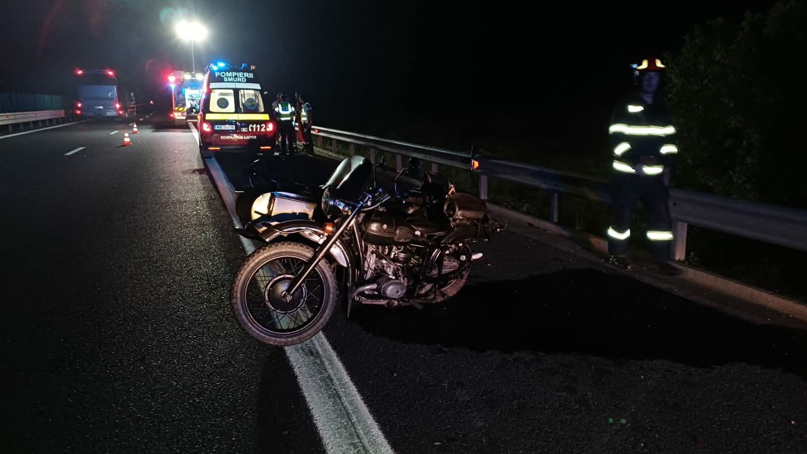 Accidentul s-a produs în urma coliziunii dintre o camionetă și o motocicletă cu ataș în care se aflau două persoane.