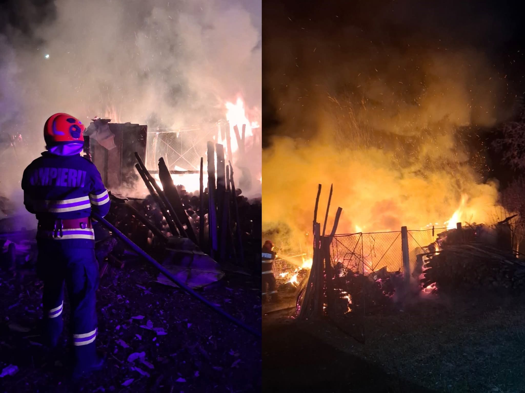 Flăcările au cuprins rapid construcția, care avea o suprafață de aproximativ 40 de metri pătrați, existând pericolul ca focul să se extindă la locuința din vecinătate.