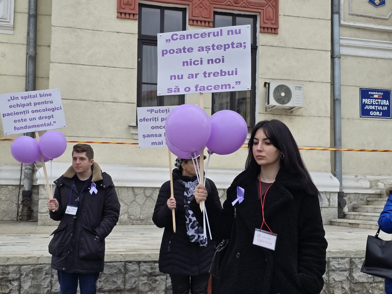 Asociația Bolnavilor de Cancer Gorj a organizat astăzi, în centrul municipiului Târgu Jiu, un miting.