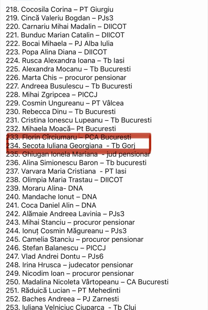 Judecătoarea Georgiana Iuliana Secotă, de la Tribunalul Gorj, a apărut pe lista judecătorilor și procurorilor care își exprimă solidaritatea cu colegii lor care au făcut dezvăluiri critice despre sistemul judiciar românesc.