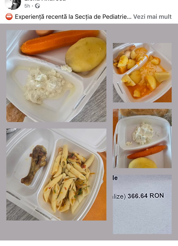 Alimentația din spital, sub orice așteptare, după cum se poate observa și în poze. Apă? Trebuie să te asiguri că ai suficientă, nu există dozatoare cu apă!