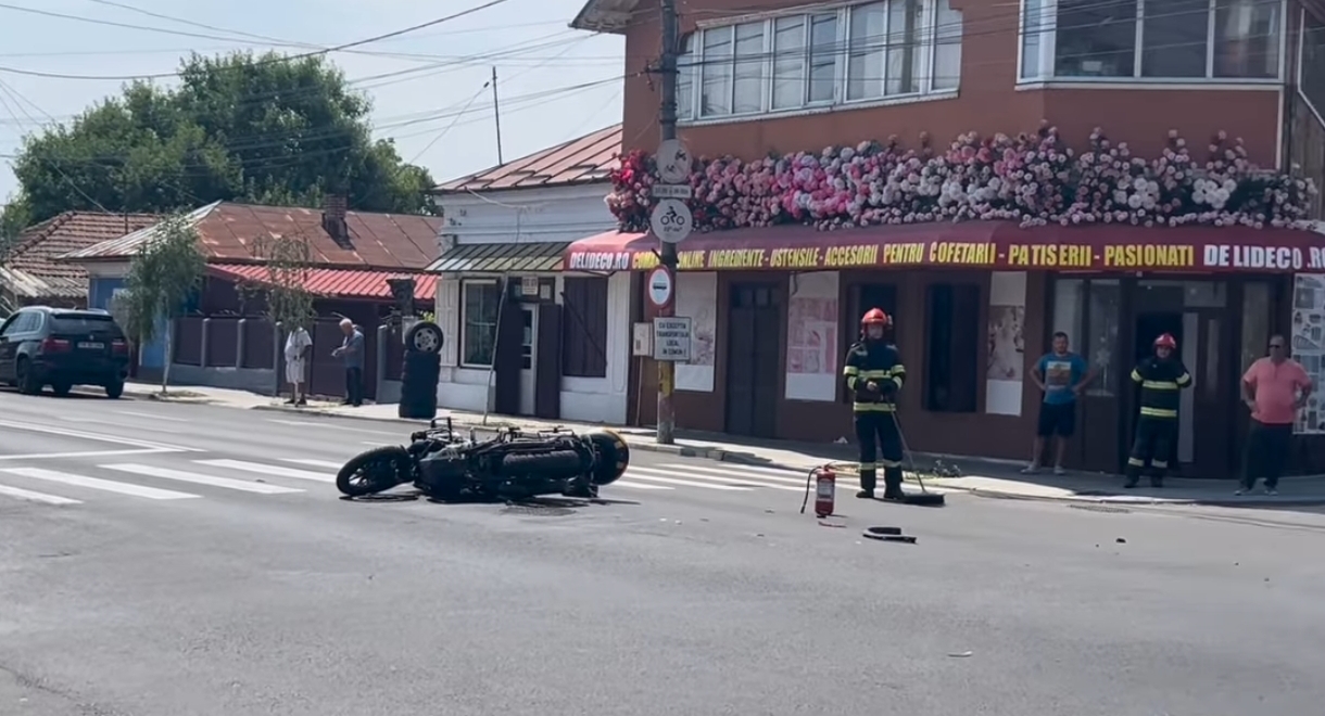 Conform martorilor, o tanara soferita aflata la volanul unui SUV marca BMW nu s-ar fi asigurat cand a virat stanga, suprinzand soferul motocicletei care nu a mai putut evita impactul.