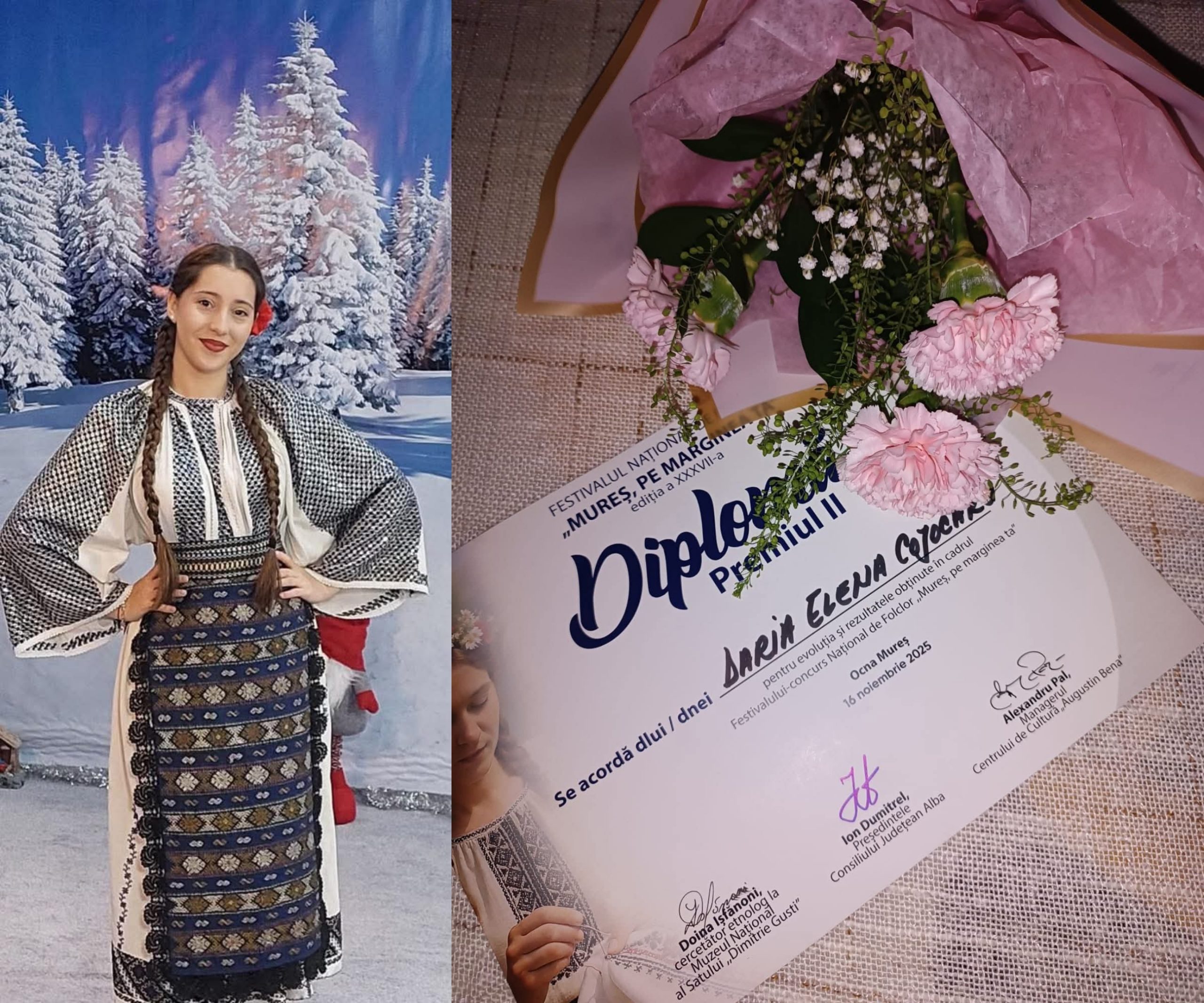 Daria Elena Cojocaru, elevă a Școlii Populare de Arte „Constantin Brâncuși” din Târgu Jiu, a obținut Premiul al II-lea la Festivalul Național de Folclor „Mureș, pe marginea ta”, ajuns anul acesta la ediția cu numărul XXXVII și desfășurat la Ocna Mureș.