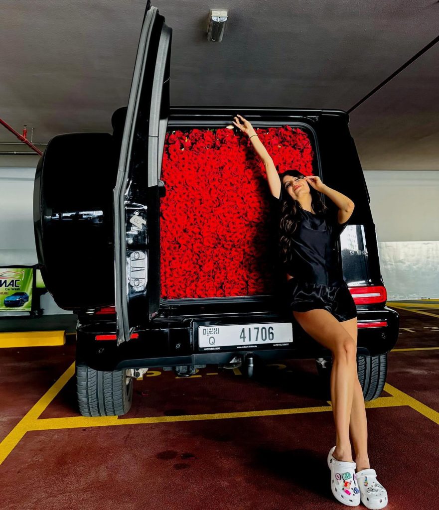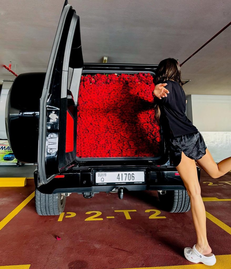 În urmă cu puțin timp, Alina, și-a publicat pe contul personal de socializare o imagine care îi taie respirația oricărei femei. Mașina sa un Mercedes Benz G-Class în valoare de peste 200.000 de euro i-a fost umplută cu trandafiri roșii.