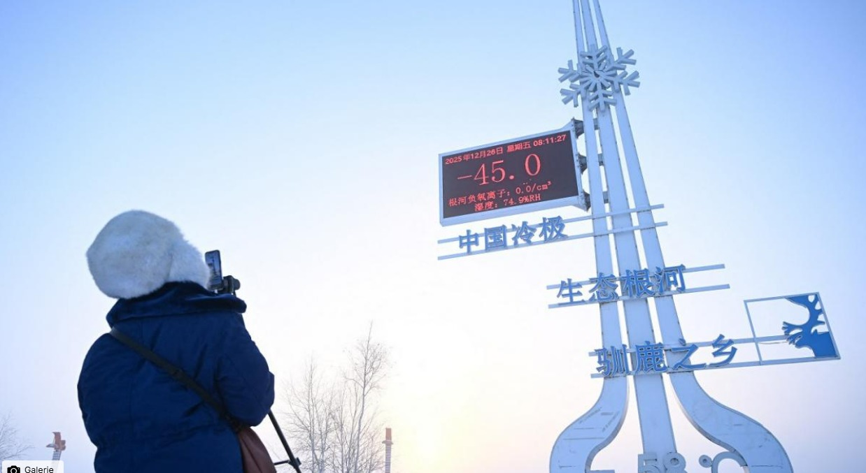 Piața în aer liber a orașului Genhe s-a deschis ca de obicei, iar clienții nu au întârziat să apară. Și chiar dacă gerul a fost mai crunt decât era de așteptat pentru această perioadă, câteva grupuri de turiști și-au făcut curaj să viziteze orașul. Iar un vlogger și-a instalat camera în fața unui termometru urban, transmițând în direct modificările suferite de temperatură.