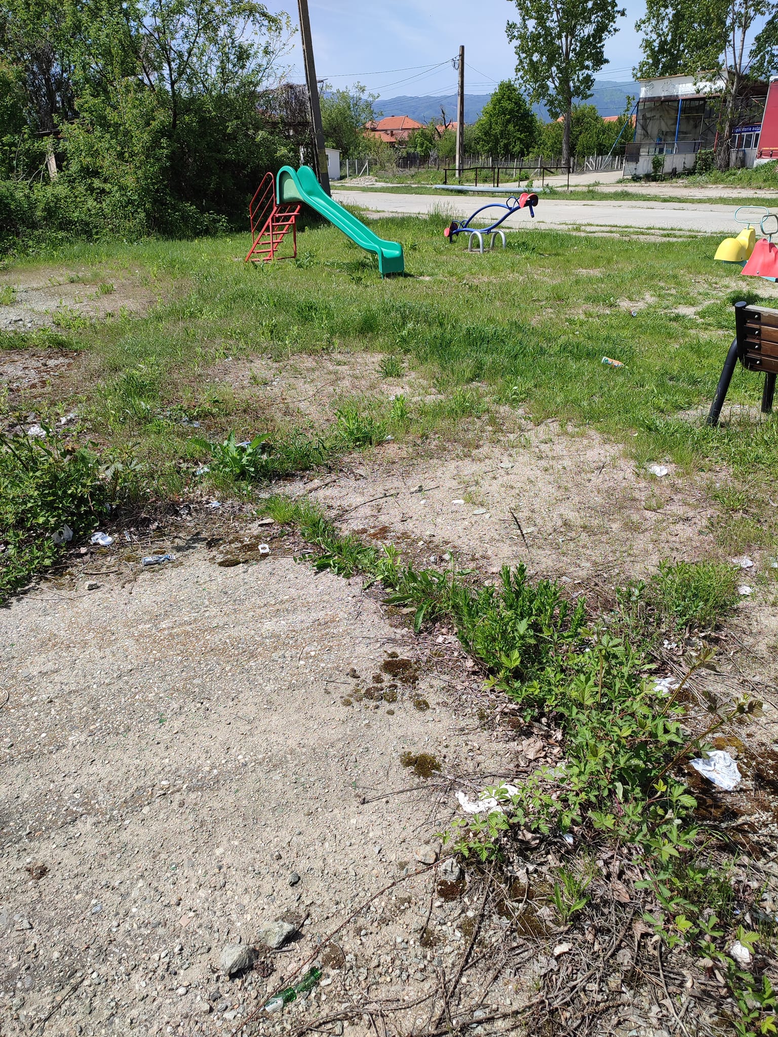 Un locuitor din Bumbești Jiu semnalează în mediul online în ce stare jalnică se află unul din parcurile de joacă pentru copii din orașul său. În imagini se observă că spațiul nu este îngrădit iar pe jos sunt plăci de beton. La câțiva metri de spațiu se pot observa mai multe gunoaie sticle goale sparte și cutii de bere.