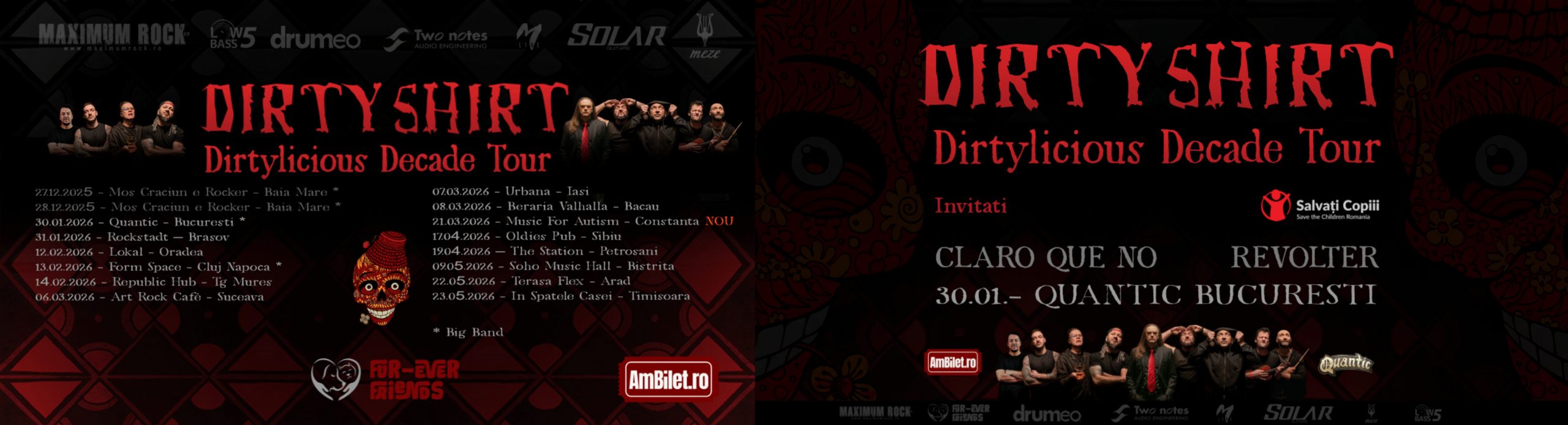 Turneul Dirtylicious Decade Tour promite mai mult decât un simplu concert. Este o experiență completă, construită în jurul albumului Dirtylicious, lansat acum 10 ani, materialul care a definit identitatea trupei și a consolidat poziția Dirty Shirt pe scena rock și metal, atât în România, cât și în afara granițelor. Mai mult, trupa își reafirmă angajamentul de a susține noua generație de artiști, oferind trupelor tinere șansa de a urca pe scenă în deschiderea concertelor.
