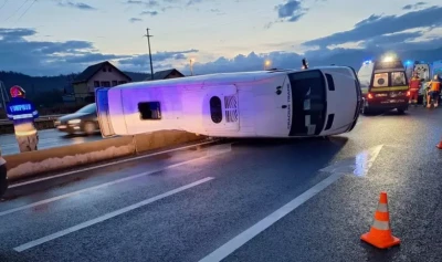 S-a activat Planul Roșu. Un microbuz plin cu călători s-a răsturnat. FOTO