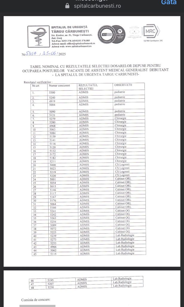 Potrivit listei oficiale publicate de spital, 48 de candidați au fost declarați admiși după selecția dosarelor și au participat la proba scrisă de astăzi.