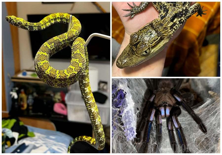 „În urma controlului efectuat într-un apartament situat pe str. Andrei Mureșanu, într-o cameră de aproximativ 12 mp, au fost identificate mai multe animale sălbatice ținute în captivitate, după cum urmează: 8 exemplare de șerpi, 2 vipere de groapă Mangshan (Protobothrops mangshanensis – specie CITES Anexa II), 3 șerpi Boa, 1 șarpe hognose vestic, 1 șarpe de porumb (anerystristic), 1 piton, 1 exemplar de varan cu pete galbene, 1 exemplar de caiman, 1 exemplar de țestoasă cu picioare roșii, 10 exemplare de tarantule”, se arată în comunicat.