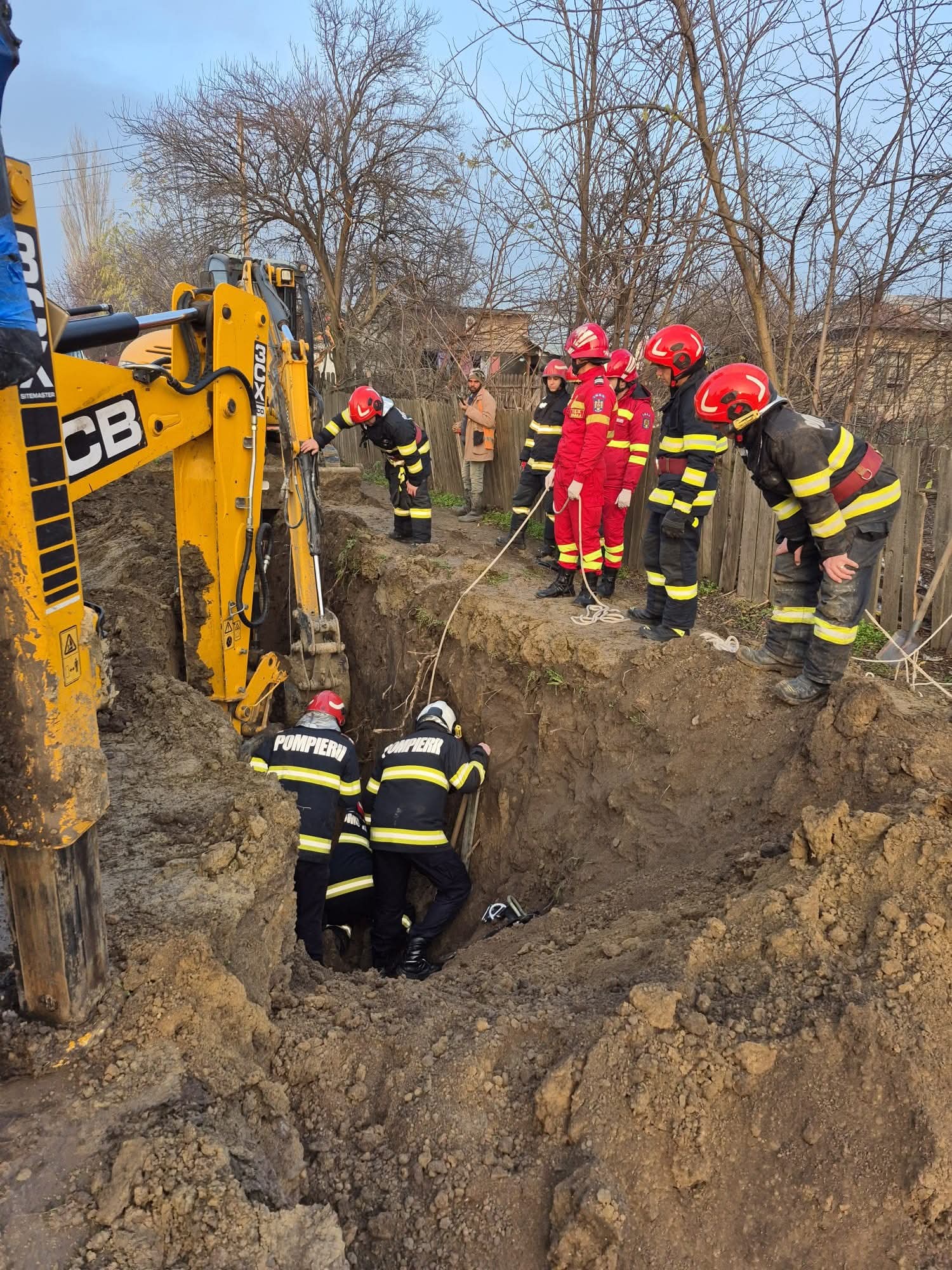 Potrivit ISU Brăila, pompierii au fost solicitaţi să intervină în localitatea Perişoru, s-au deplasat cu o autospecială de descarcerare şi un container de căutare-salvare şi au reuşit să îl scoată de sub pământ pe bărbatul de 45 de ani după aproximativ două ore.