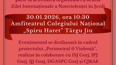 Eveniment dedicat Zilei Internaționale a Nonviolenței în Școli, organizat azi la Liceul „Spiru Haret” Târgu Jiu
