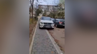 Șoferiță filmată în timp ce merge cu Mercedesul pe trotuar, pentru a-și lăsa copilul fix în faţa școlii
