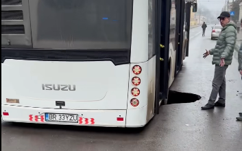 O groapă uriaşă a apărut în asfalt, pe o stradă din municipiul Brăila, iar roţile din spate ale unui autobuz…
